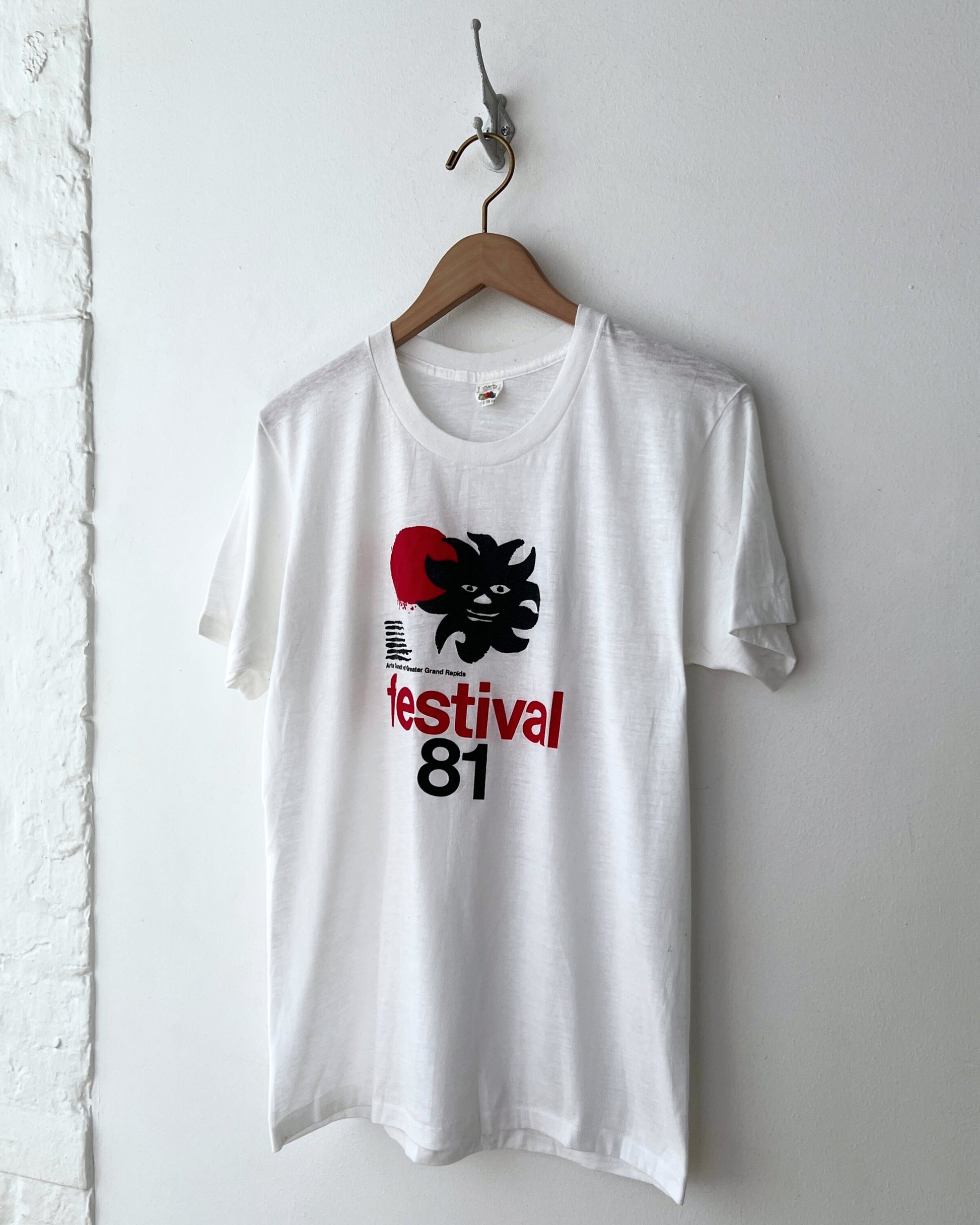 Tag reads size L, made in USA by Fruit of the Loom, 50% cotton, 50% polyester