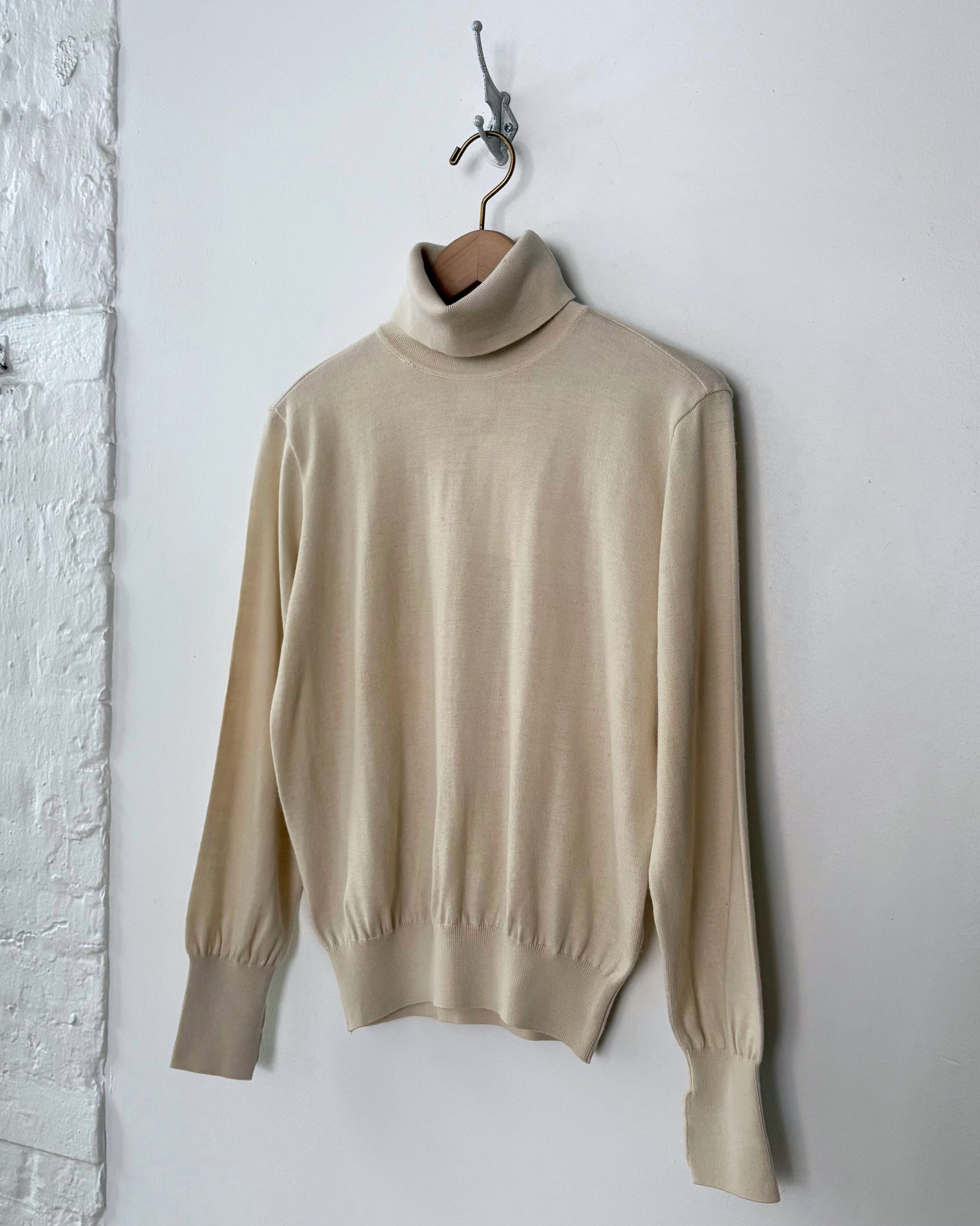 Tag reads size M, made in Japan, 80% wool, 20% silk