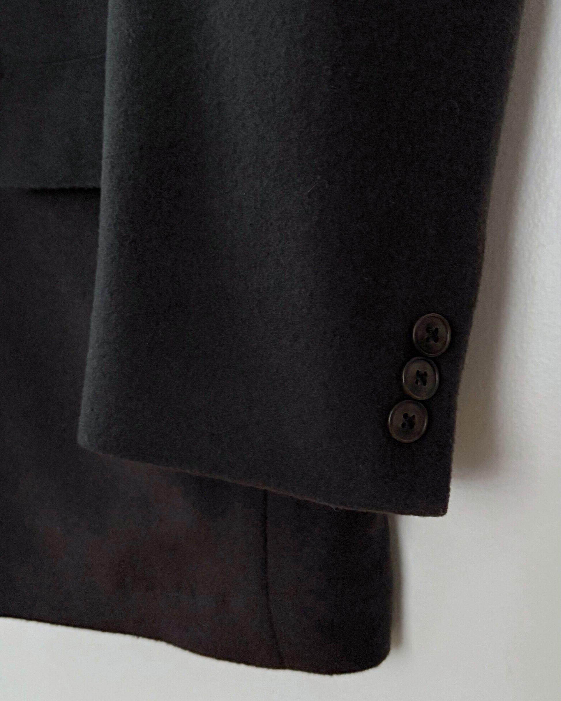 Tag reads size 44 R, made in USA, 65% wool, 20% cashmere, 15% nylon